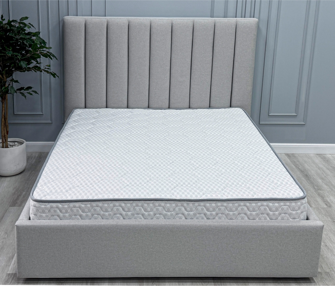 Трикотаж «Carbon» — современный и стильный материал с оригинальным рельефным рисунком «соты», который придаёт матрасу эффектный и премиальный вид. Высокая плотность ткани гарантирует её прочность и долговечность, а эластичная структура обеспечивает идеально ровное прилегание к наполнителю, сохраняя гладкость поверхности на протяжении всего срока службы. Материал обладает хорошей воздухопроницаемостью, что помогает поддерживать комфортный микроклимат во время сна, и устойчив к износу, сохраняя свой внешний вид даже при длительной эксплуатации.