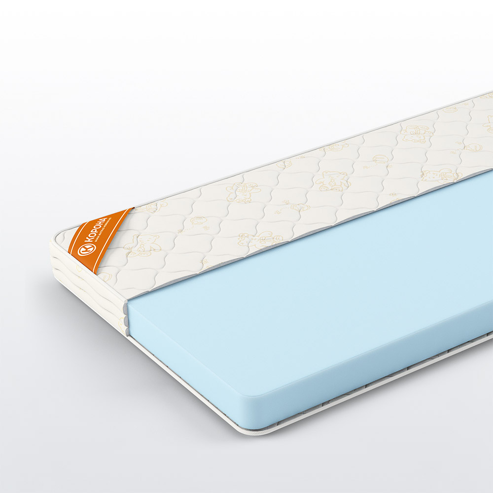 Модель, подходящая, как для новорожденных, так и для детей до 3-лет. В этом возрасте педиатры советуют использовать средне-жесткие матрасы, так как у детей еще не сформировалась S-образная форма позвоночника. Физиологические изгибы появляются с началом уверенной ходьбы, то есть ближе к 1,5 годам, а полностью формирование завершается к 15-16 годам. Моноблок из эластичного пенополиуратана образует ровную поверхность и не сдавливает мягкие ткани.